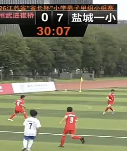 2026江苏省“省长杯”小学男子甲组小组赛,常州武进崔桥0-7不敌盐城一小;常州武进礼河0-6不敌徐州金龙湖。