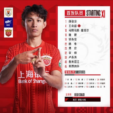 中超联赛第六轮,山东泰山vs上海海港,今日首发名单