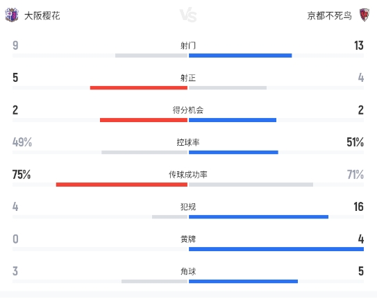 直播吧04月18日讯,J联赛西区第11轮比赛,大阪樱花主场对阵京都不死鸟。上半场第18分钟,蒂亚戈率先为大阪樱花取得领先。比赛第66分钟,本间至恩为大阪樱花扩大比分。补时阶段,樱川为大阪樱花锁定胜局。最终大阪樱花3-0战胜京都不死鸟。