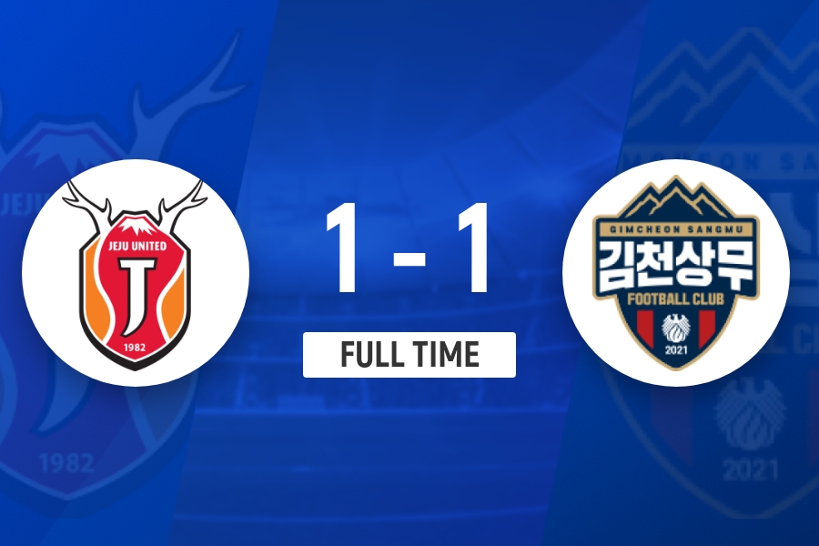 直播吧04月18日讯 K联赛第8轮,济州联队坐镇济州世界杯球场迎战金泉尚武,上半场第28分钟,客队通过任意球先拔头筹,上半场结束场上比分0-1!易边再战,第48分钟济州联队也通过任意球顺利扳平比分,此后双方均无建树1-1保持至终场!