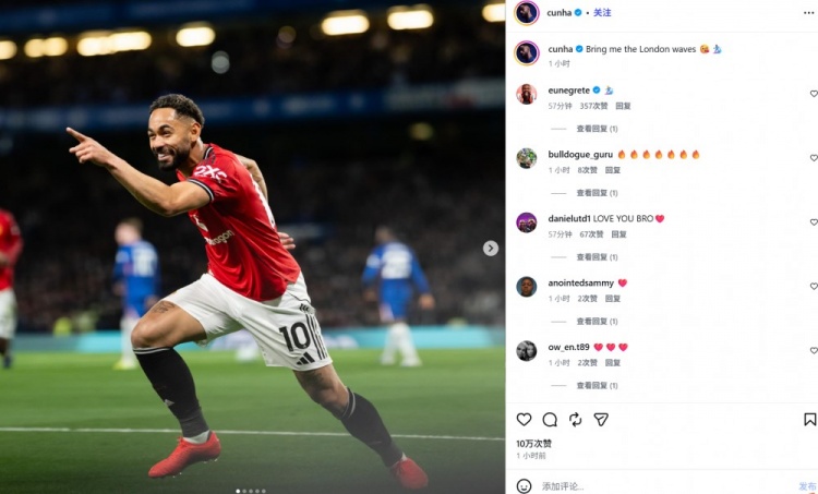 库尼亚也在赛后通过社媒晒出自己进球后的庆祝照,并配文:“让伦敦的波涛为我翻涌起来