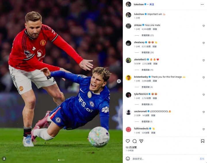 赛后卢克·肖ins晒照,并写道:“重要的胜利”