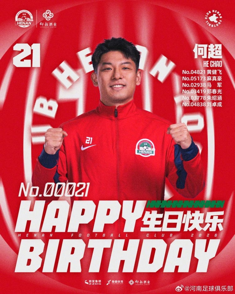 今天是河南俱乐部彩陶坊球员何超(会员ID:No.00021)及6名官方会员的生日,让我们一同祝福他们生日快乐!
