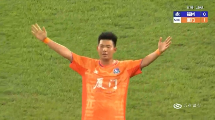 >厦门队2-0领先福州队!角球机会江泽源力压门将和后卫头槌破门
