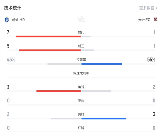 第20分钟,申昶武临空抽射,光州迅速扳平比分1-1↓↓↓