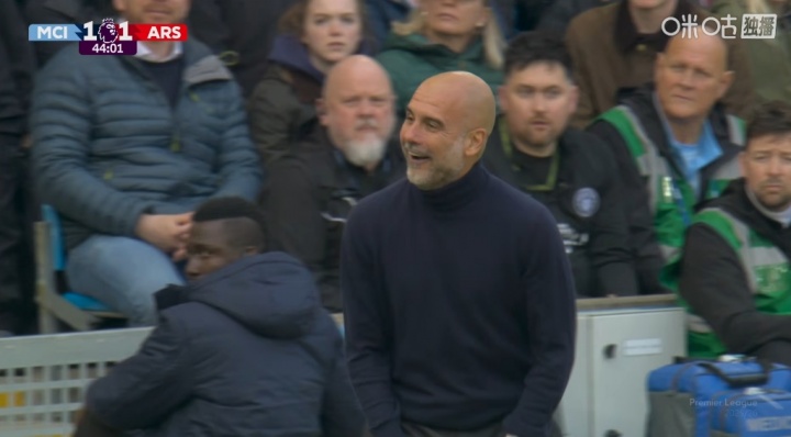 这是咋了🤣瓜帅场边抽象表情连连拍大腿,旁边阿尔特塔一动不动