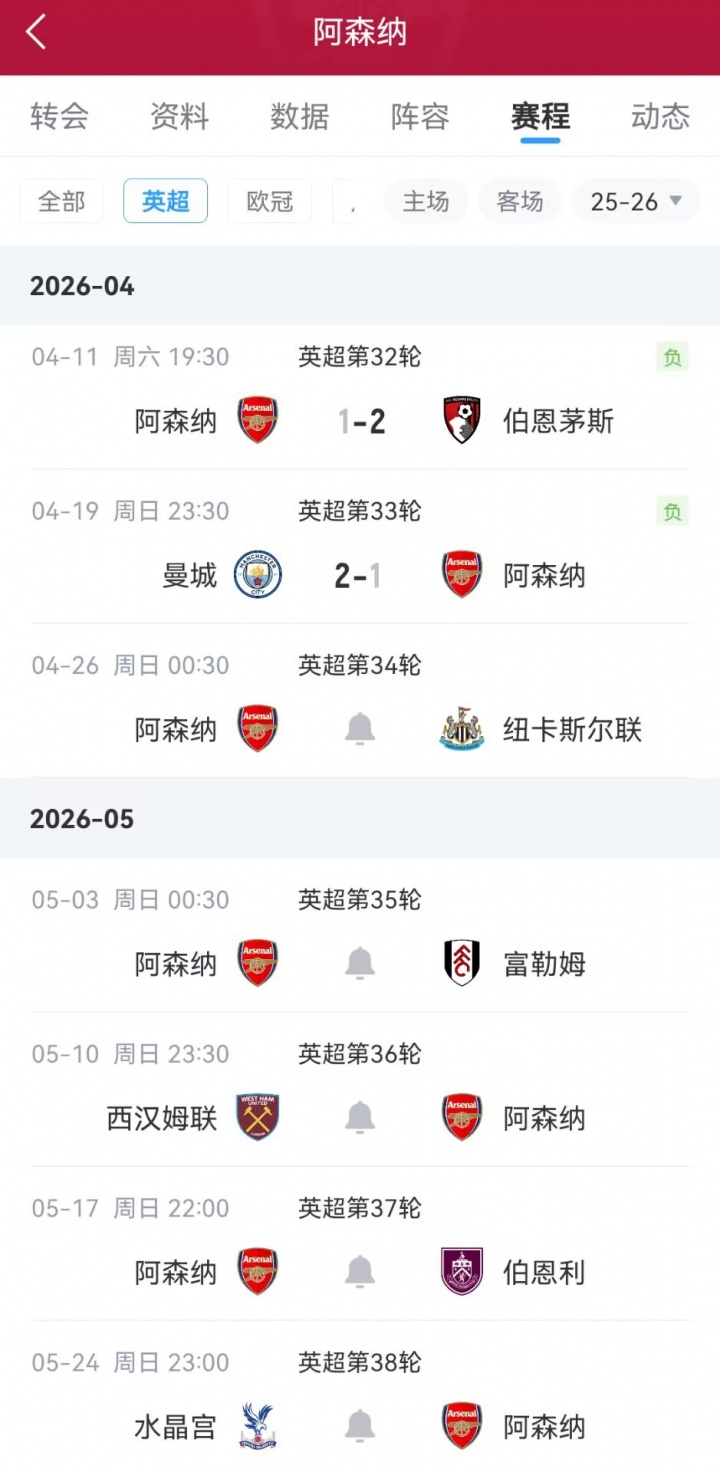 >多赛1轮领先优势仅剩3分!阿森纳连续两轮输球丢分,负樱桃、曼城