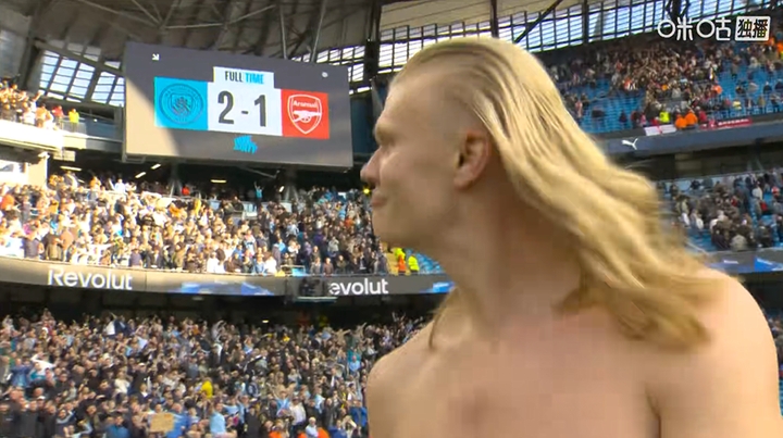 直播吧04月20日讯 曼城本轮2-1击败阿森纳,哈兰德赛后脱去上衣,现在是金发美人哈兰德!