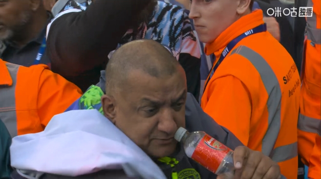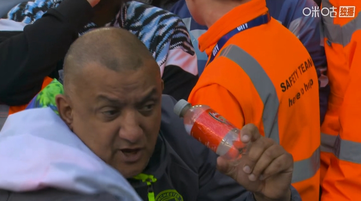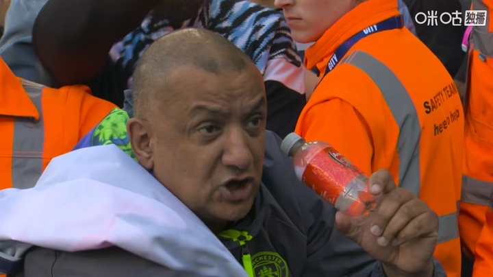 Bottle了?!转播镜头又拍到曼城球迷“水瓶哥”,他又拿起了瓶子