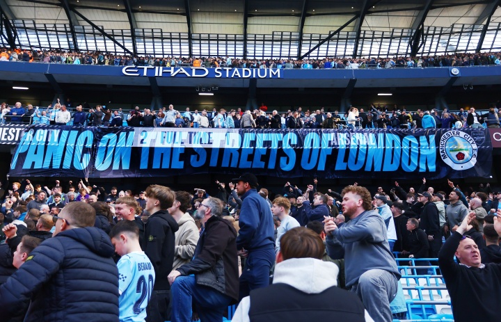 >曼城球迷拉横幅嘲讽:伦敦街头现在很慌