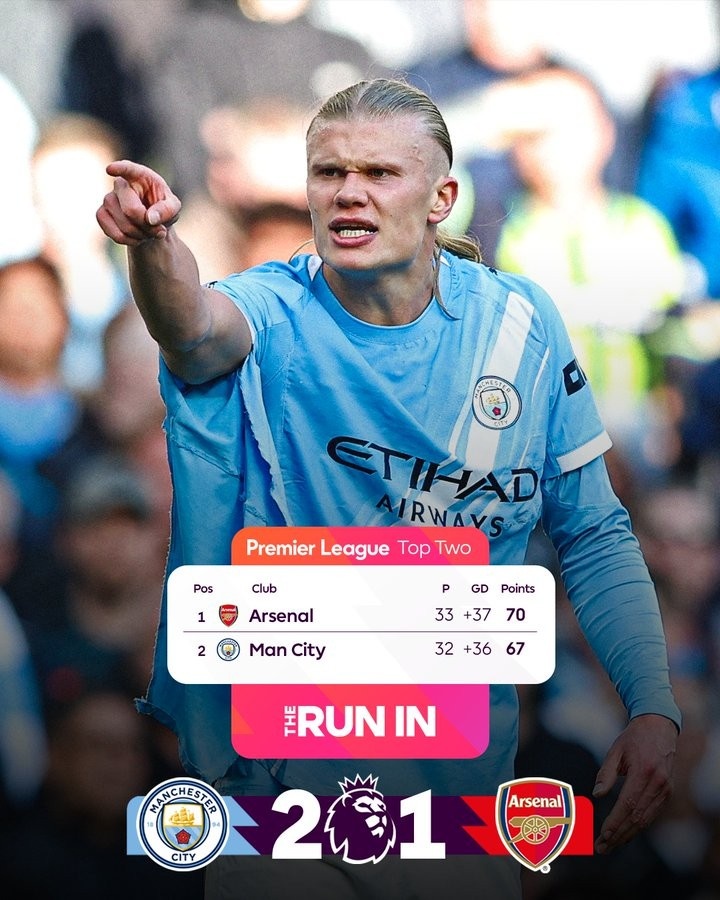直播吧4月20日讯 本轮英超焦点战,曼城主场2-1力克阿森纳,少赛一场仅落后3分。