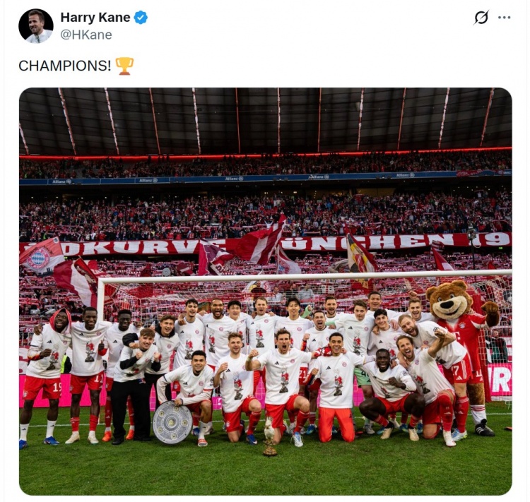 他也在赛后通过社媒晒出全队夺冠后的庆祝大合照,并言简意赅配文:“冠军!”
