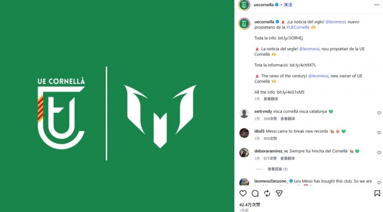 只有一个梅西。只有他能够调动大众,产生如此巨大的影响力。这家巴赫略夫雷加特县的俱乐部在相关消息爆出几小时后便自夸为“世纪新闻”。许多人不敢相信,正如甚至俱乐部内部成员在官宣当天接受采访也信誓旦旦“这是个谎言”。但没错,这位8次金球奖得主确实买下了科内利亚。