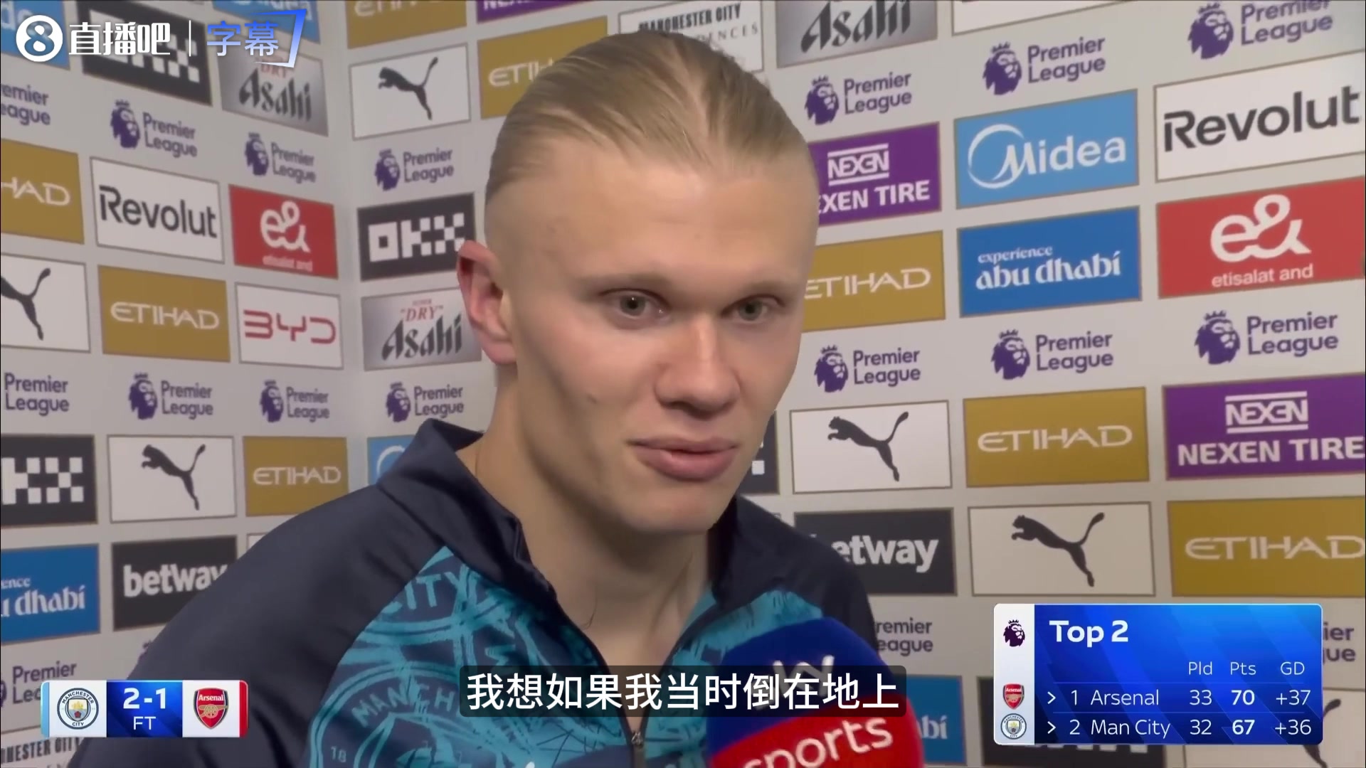 哈兰德:“我想如果我当时倒在地上——虽然我不会这么做,除非有人真的攻击我——我觉得可能是张红牌,我不确定。说实话,我还没回看当时的情况,但事情就是这样。我不会像这样轻易地倒在地上。所以,我拿到一张黄牌,不知道为什么,他冲着我的脸就来了,事情就是这样。”