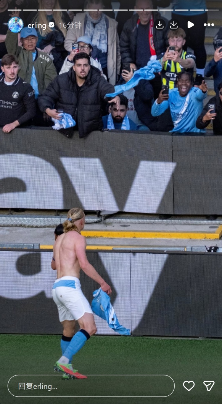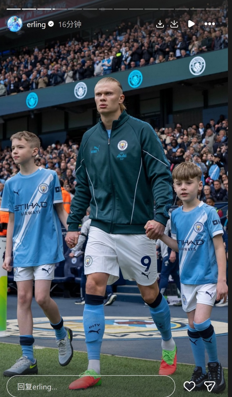 比赛第二天,哈兰德社媒连发多张赛场照片,庆祝球队取得关键一役的胜利。