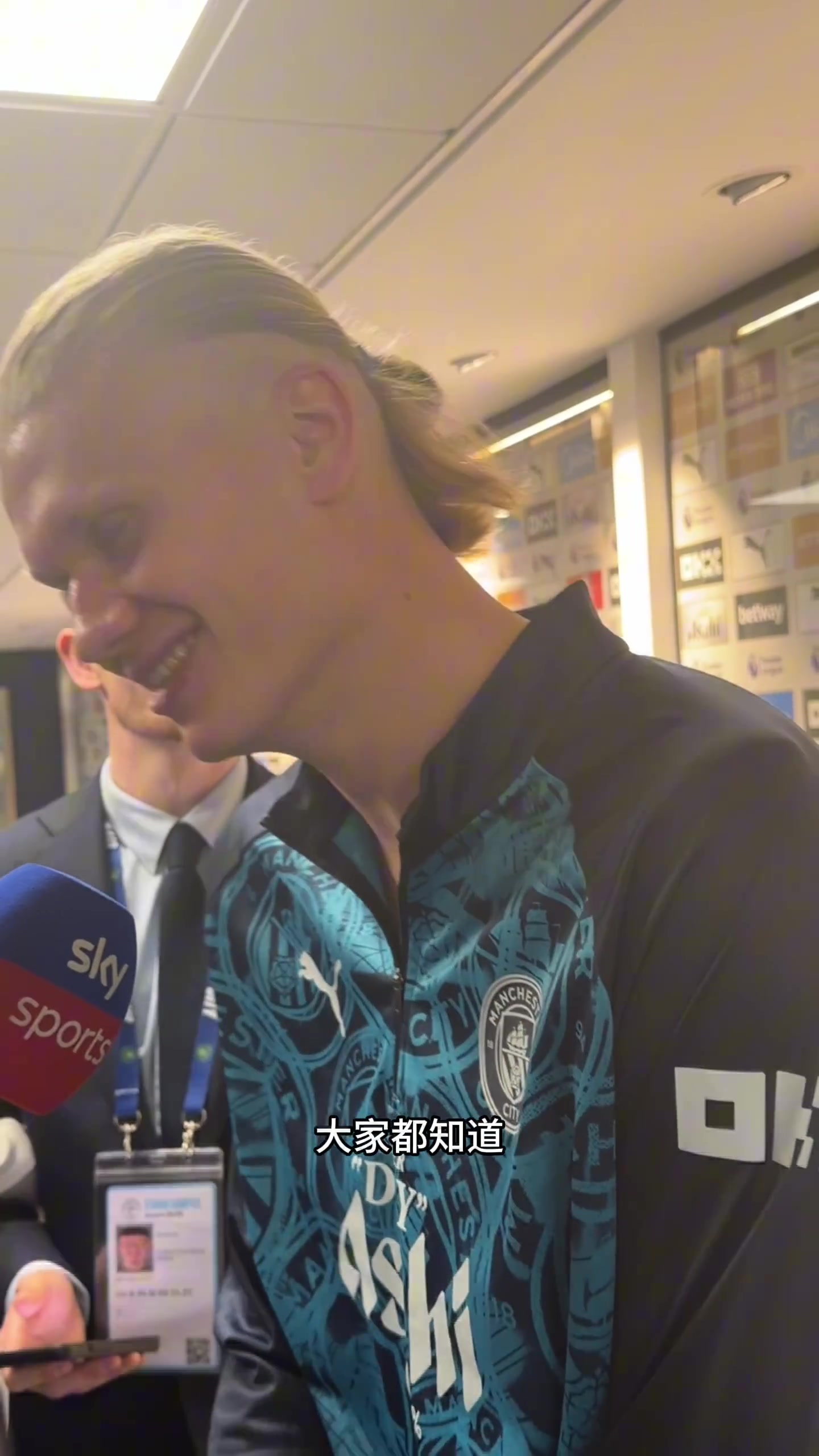 直播吧04月20日讯 英超第33轮,曼城2-1阿森纳,哈兰德在比赛中紧身打底衫被撕破。记者Dudumassa晒出视频,赛后,哈兰德在混采区接受采访时谈到此事,表示身上都是抓伤有时候自己女友看了都不高兴。