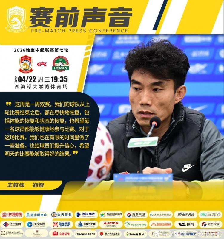 直播吧4月21日讯 4月22日19:35,中超第7轮,青岛西海岸对阵河南队,球队主帅郑智赛前出席发布会时表示,球队在有限的时间做了些准备。