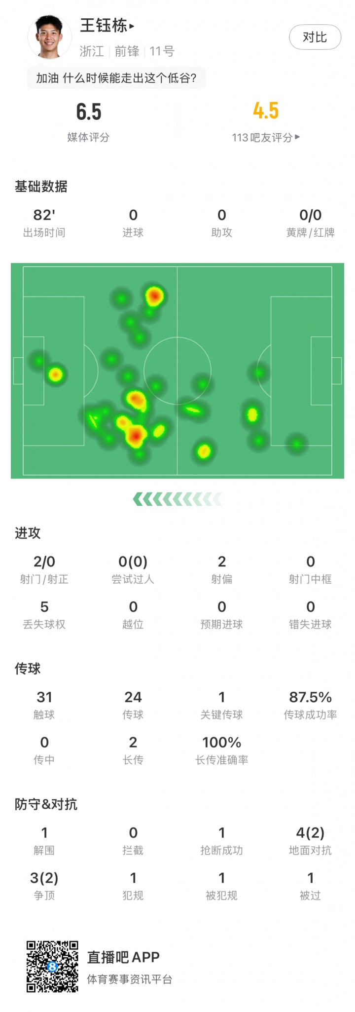 本场王钰栋数据↓
