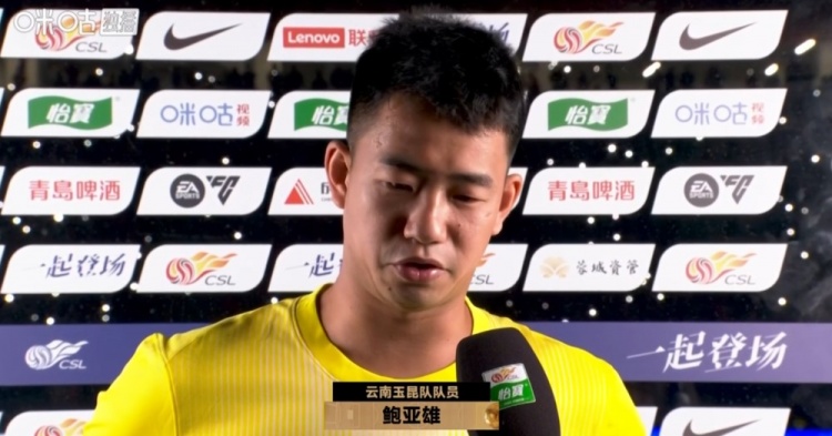 直播吧4月21日讯 2026赛季中超第7轮,云南玉昆客场1-2遭成都蓉城逆转,赛后玉昆门将鲍亚雄接受了采访。