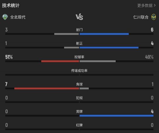 直播吧04月21日讯 K联赛第9轮,全北现代在主场全州市世界杯球场迎战仁川联合!上半场第13分钟,全北现代先拔头筹,上半场尾声阶段,仁川点射扳平比分!易边再战,第59分钟仁川完成反超,之后双方均无建树!最终全场比分1-2。
