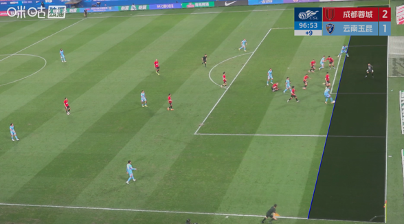 第80分钟,蓉城战术角球开出,韦世豪门前头球顶偏。↓