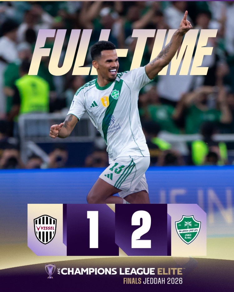 直播吧4月21日讯 北京时间4月21日凌晨0:15,亚冠精英联赛半决赛,神户胜利船在吉达阿卜杜拉国王体育城体育场对阵吉达国民。上半场武藤嘉纪破门,神户胜利船暂1-0吉达国民;下半场加莱诺和托尼进球,帮助吉达国民反超,最终吉达国民2-1逆转神户胜利船,晋级决赛。