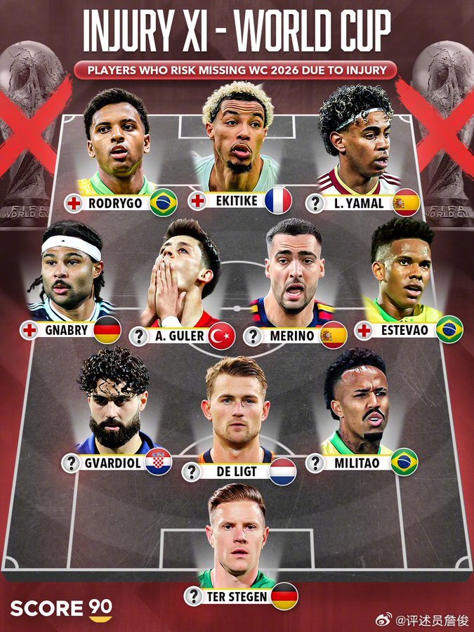 詹俊写道:罗德里戈、埃基蒂克与格纳布里都已经确认无法参加美加墨世界杯了,其他的伤兵能否赶得上也是未知数。姆巴佩在皇马客场战平贝蒂斯的比赛中也拉伤了,赛季最后这一个多月有点“危险”.............