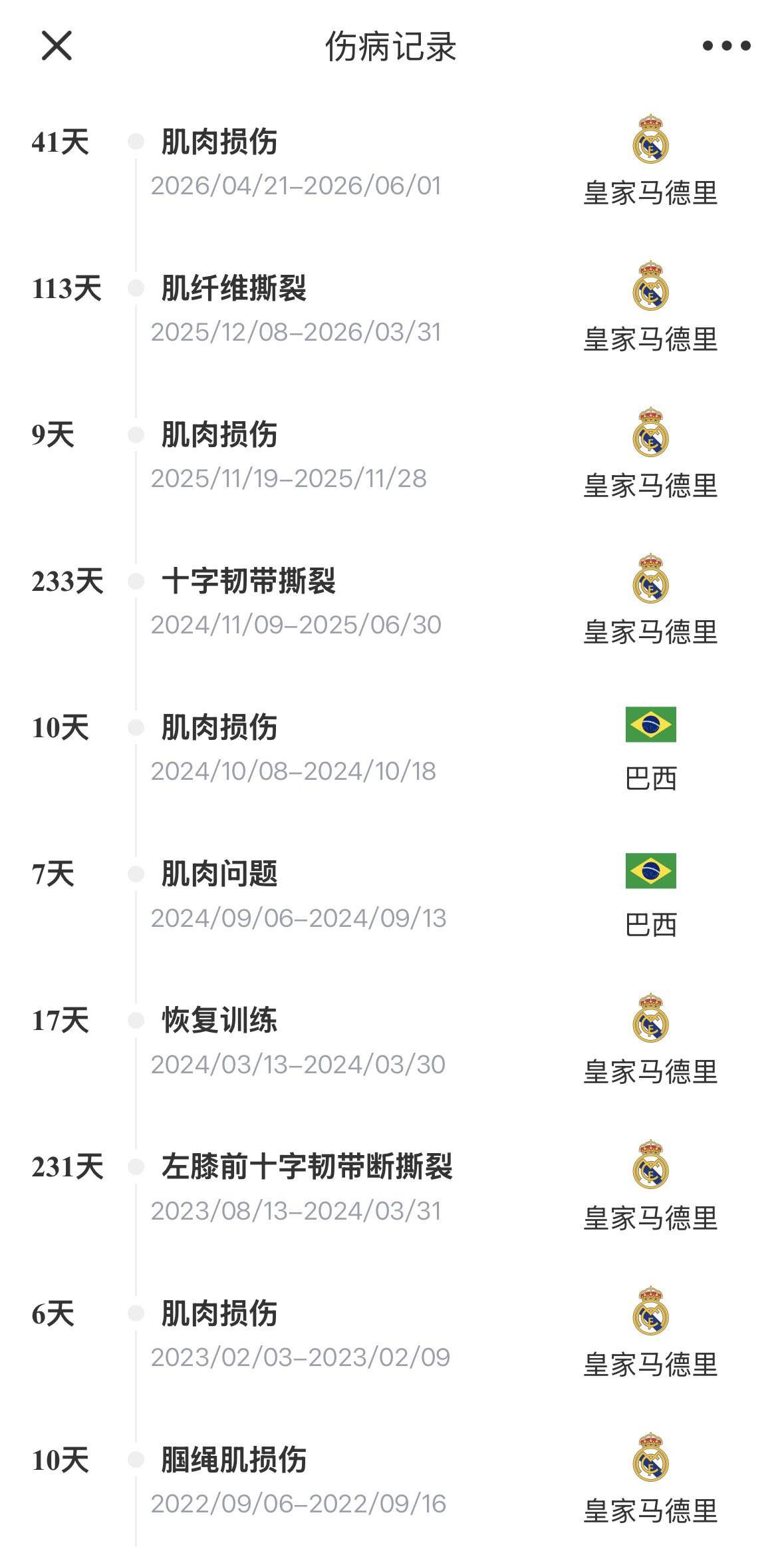 米利唐在皇马对阵阿拉维斯的比赛中受伤,最初的医疗检查显示是左腿股二头肌肌肉损伤,当时预计他将缺席本赛季剩余比赛,但有望赶上世界杯。