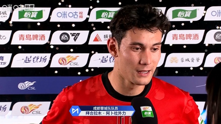 直播吧4月25日讯 2026赛季中超第8轮,成都蓉城主场4-0大胜浙江,赛后收获进球的蓉城球员拜合拉木接受了采访。