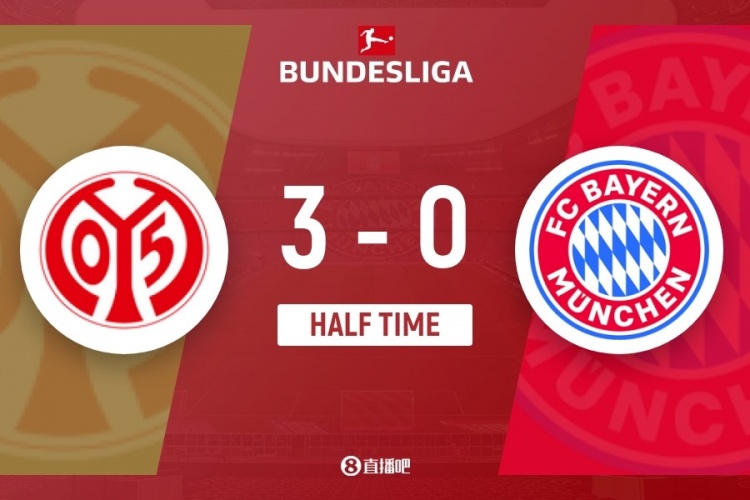 直播吧4月25日讯 北京时间4月25日晚上21:30,德甲第31轮,拜仁慕尼黑做客欧宝竞技球场挑战美因茨。上半场,D·科尔凌空斩,内布尔破门,乌尔比希屡献神扑,贝克尔再下一城。半场比赛结束,拜仁慕尼黑0-3美因茨。