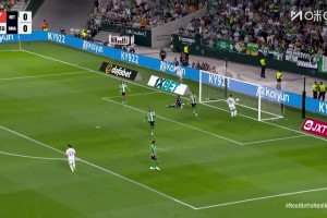 第17分钟,贝蒂斯门将开球被顶回,巴尔韦德得球远距离打出贴地箭被门将扑出,门前维尼修斯跟进补射入网!皇马1-0领先↓
