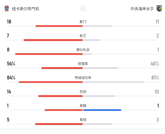 直播吧04月25日讯,澳超第26轮,纽卡斯尔喷气机主场对阵中央海岸水手。上半场,多布森和泰勒以及亚当斯各进一球,纽卡斯尔喷气机3-0领先结束上半场。下半场易边再战,水沼宏太再进一球,纽卡斯尔喷气机最终4-0战胜中央海岸水手。