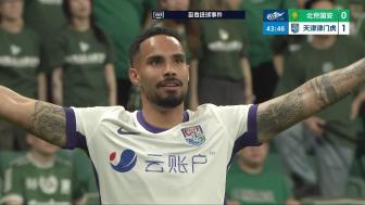 第69分钟,津门虎再下一城!哈达斯左路传到禁区基莱斯小角度凌空抽射破门,国安2-3津门虎。↓