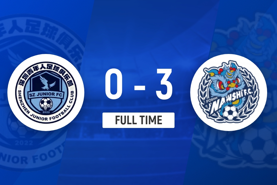 全场比赛结束,深圳青年人0-3佛山南狮。