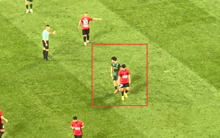 据现场球迷拍摄的视频显示,王钰栋疑似冲傅明说了些什么,傅明向王钰栋掏出黄牌警告。