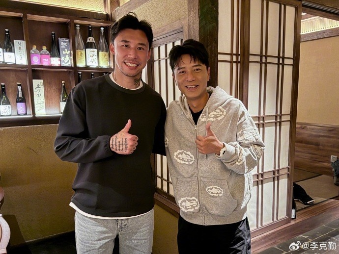 李克勤在社媒晒出照片并配文写道:“上海 工作 + 好友相聚 很开心!”