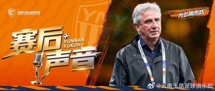 云南玉昆主教练乔迪先生:“大家晚上好。首先要祝贺我们的球员、我们的团队。所有人都非常努力、全力付出。上半场我们打得非常不错,制造出了比对手更多的进球机会。对手下半场也组织了更多有效进攻,多次打入我们禁区,我们防守端确实遇到了一些麻烦。但我们也通过更高效的反击锁定了比赛胜局。最后一个点球比较可惜,我们原本有机会零封对手、全取三分。再次祝贺我们的球员和团队,在如此困难的客场拿下 3 分。”