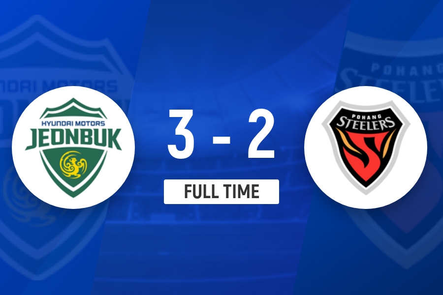 直播吧04月26日讯,K联赛第10轮,全北现代主场对阵浦项制铁。上半场,金永彬为全北现代先拔头筹。随后,李昊宰点球命中,为浦项制铁扳平比分。第44分钟,金河俊再次为全北现代反超比分,上半场,全北现代2-1领先。下半场第66分钟,李昊宰再次点球命中,把比分扳为2-2。比赛读秒时刻,姜尚润世界波绝杀,全北现代3-2战胜浦项制铁。