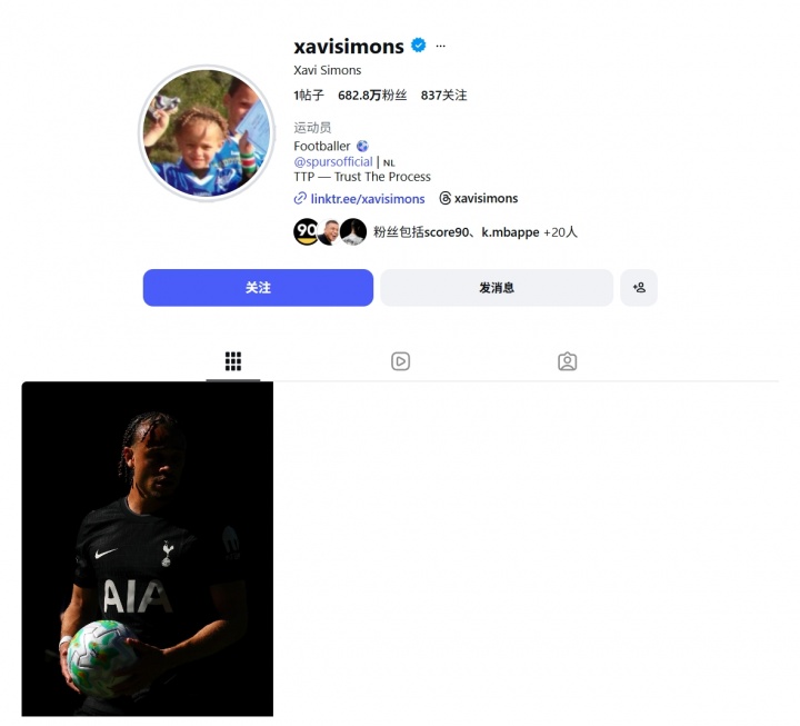 目前,哈维·西蒙斯清空了自己的社媒,只留下一条关于伤情的帖文。