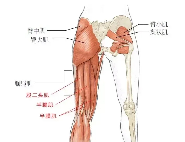 你可以用手摸到大腿正后方偏内侧的一条粗壮的肌腱,沿着大腿往膝盖方向摸,靠近膝盖内侧下方能摸到一条明显的“筋”,那就是半腱肌的肌腱。足球、短跑等运动中容易拉伤这块肌肉。