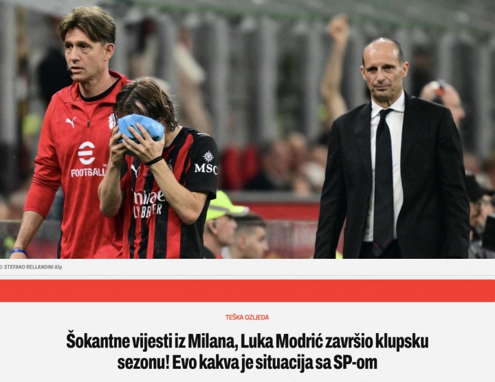 直播吧04月27日讯 据克罗地亚媒体Sportske Novosti报道,40岁的AC米兰中场莫德里奇遭遇颧骨两处骨折,赛季报销,预计能赶上世界杯,但届时可能要戴面具出战。
