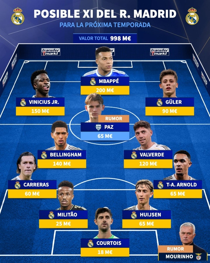 德转预测皇马下赛季首发: