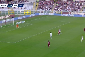 第70分钟,伊尔汗禁区前沿分球右侧,小西蒙尼面对索默挑射破门,都灵扳回一球1-2国米↓