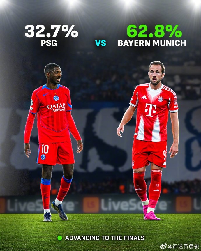 詹俊:大巴黎与拜仁的交锋此前从未出现过平局,准备熬夜看球的朋友都希望是进球大战!外媒预测的两场欧冠半决赛四队的晋级可能性...................这符合球迷的预期么?个人觉得大巴黎和马竞的可能性接近55%。