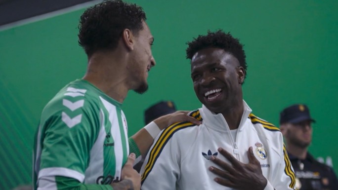 凭借这份友谊,DAZN的摄像机在球员出场前的球员通道内捕捉到了一个既自发又有趣的场景。画面始于维尼修斯调侃安东尼的新发型:“你弄了个很漂亮的发型。现在你是个稳重的人了,是两个孩子的父亲了。”