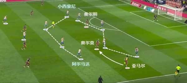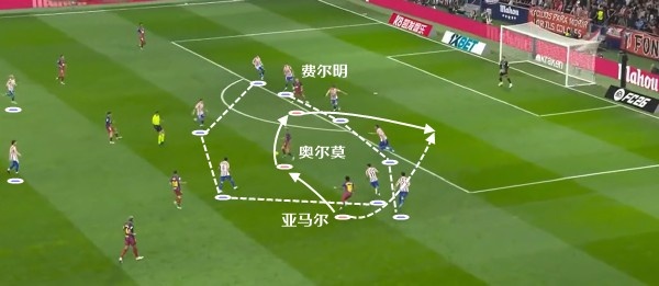 在欧冠8强战第二回合,这一次就是巴萨抓中圈的机会,瞬间发起进攻,随后奥尔莫得球时,马竞球员很难对他产生干扰,让前者轻松助攻费兰托雷斯完成进球。