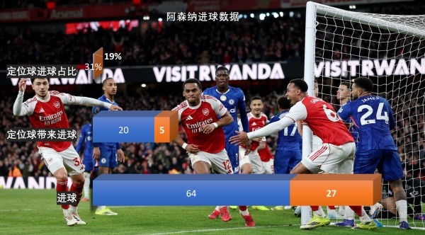 阿森纳的定位球是他们极为重要的得分手段,在英超赛场,阿森纳31%的进球来自定位球进球。欧冠赛场,虽然因为对手的严防死守,让这个比例降低到19%,不过阿森纳的定位球和角球,依旧会让每一个对手惊出一身冷汗。