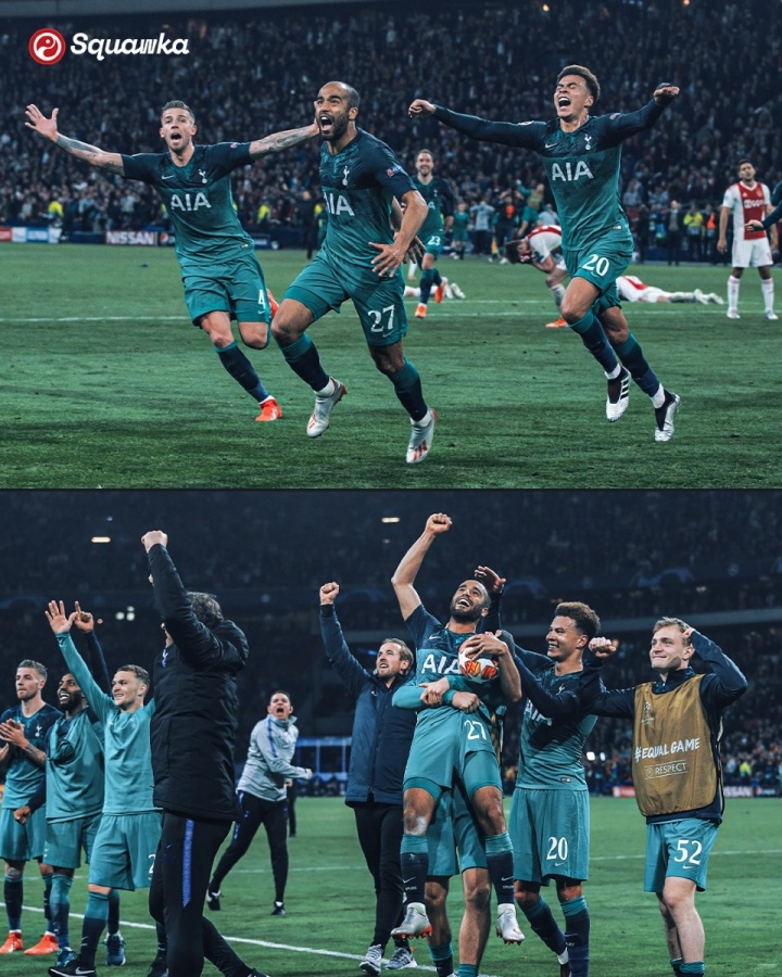 首回合范德贝克建功,次回合回到阿姆斯特丹,德里赫特和齐耶赫半场前就帮助阿贾克斯总比分3-0领先。下半场卢卡斯·莫拉戴帽上演奇迹,包括第96分钟的制胜球,最终热刺凭借客场进球优势晋级决赛。