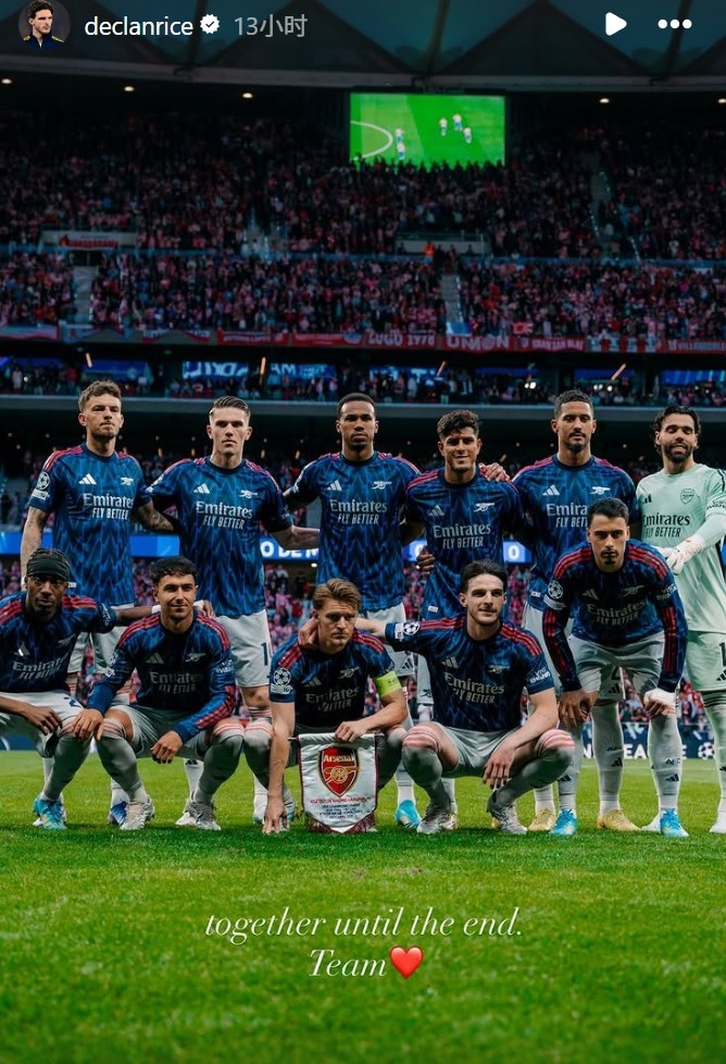 >赖斯社媒:下周一切皆有可能,全队将团结战斗到最后一刻
