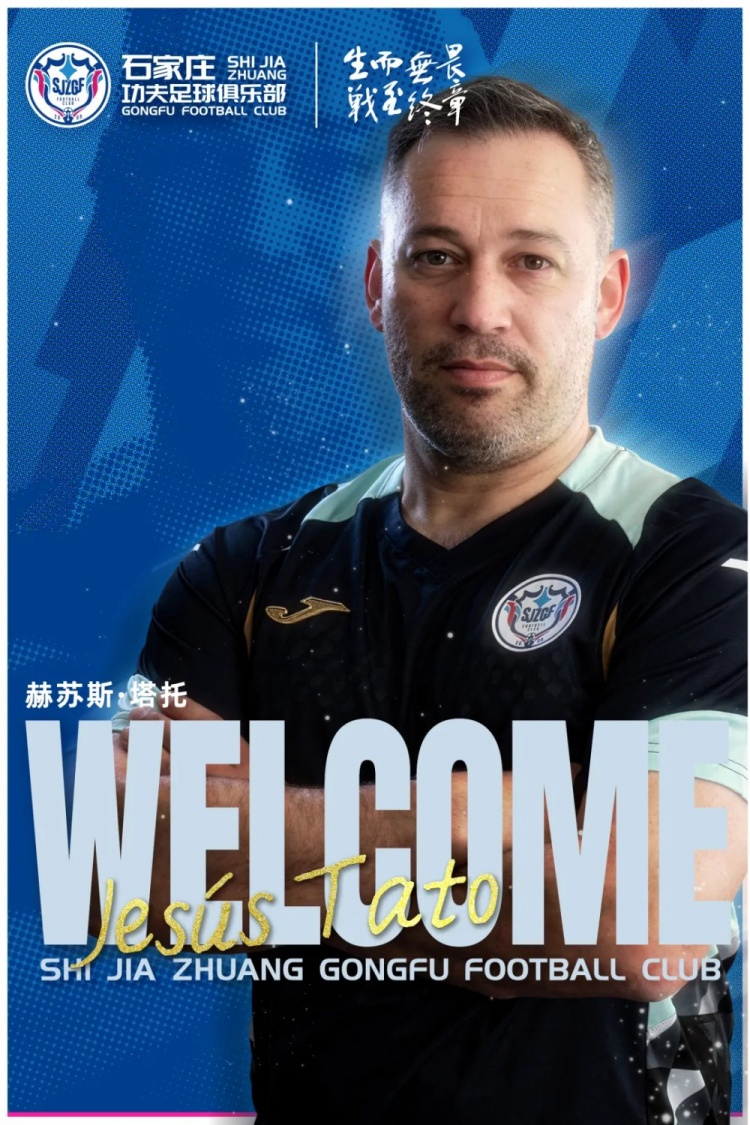 经石家庄功夫足球俱乐部与本人友好协商并达成一致,西班牙籍教练员赫苏斯·塔托(Jesús Rodríguez Tato)先生正式出任石家庄功夫足球俱乐部一线队主教练,全面负责球队训练、比赛及团队管理工作,带队征战接下来的各项赛事。